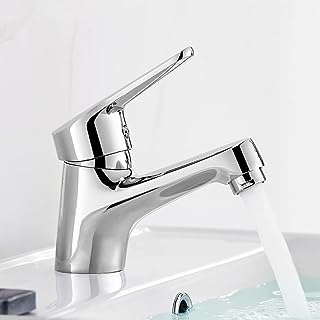 Grifo de Lavabo de Latón, Grifo de Baño Clásico, Agua Fría y Caliente, Cromo, Plata